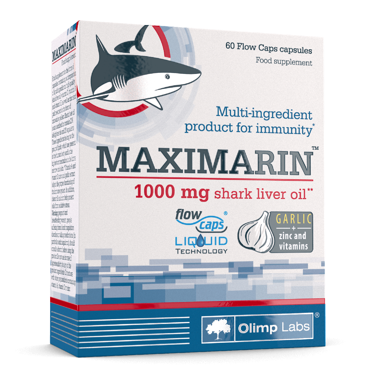 MAXIMARIN™ is a food supplement in a form of Flow Caps™ capsules, containing a properly selected composition of ingredients in liquid form: high quality shark liver oil and vitamins A, E, D, and also in a form of innovative pellets: zinc in a form of highly absorbable amino acid chelate Albion™ (zinc bisglycinate) and garlic extract standardized to allicin and allin content.